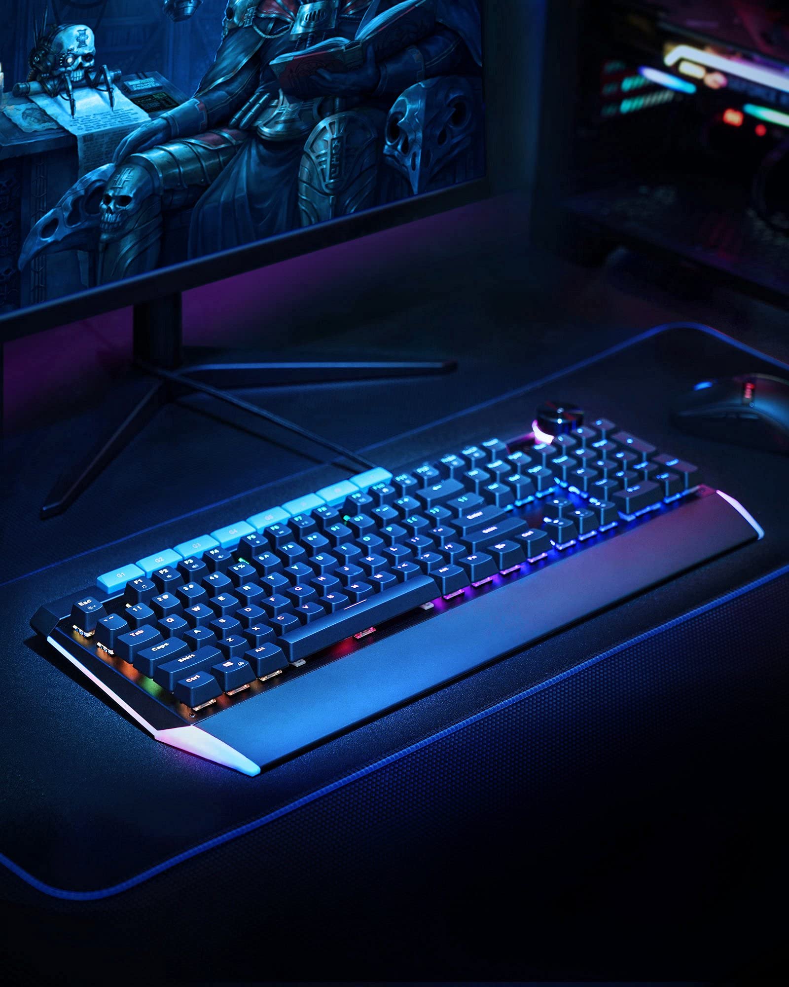 - ?Blue Switches?: Our keyboard uses professional-grade blue switches, which provide perfect soft touch along with satisfying click and greatly reduce stress from prolonged typing or gaming,characterized by precise tactile feedback and satisfying travel with an audible ‘click’ sound