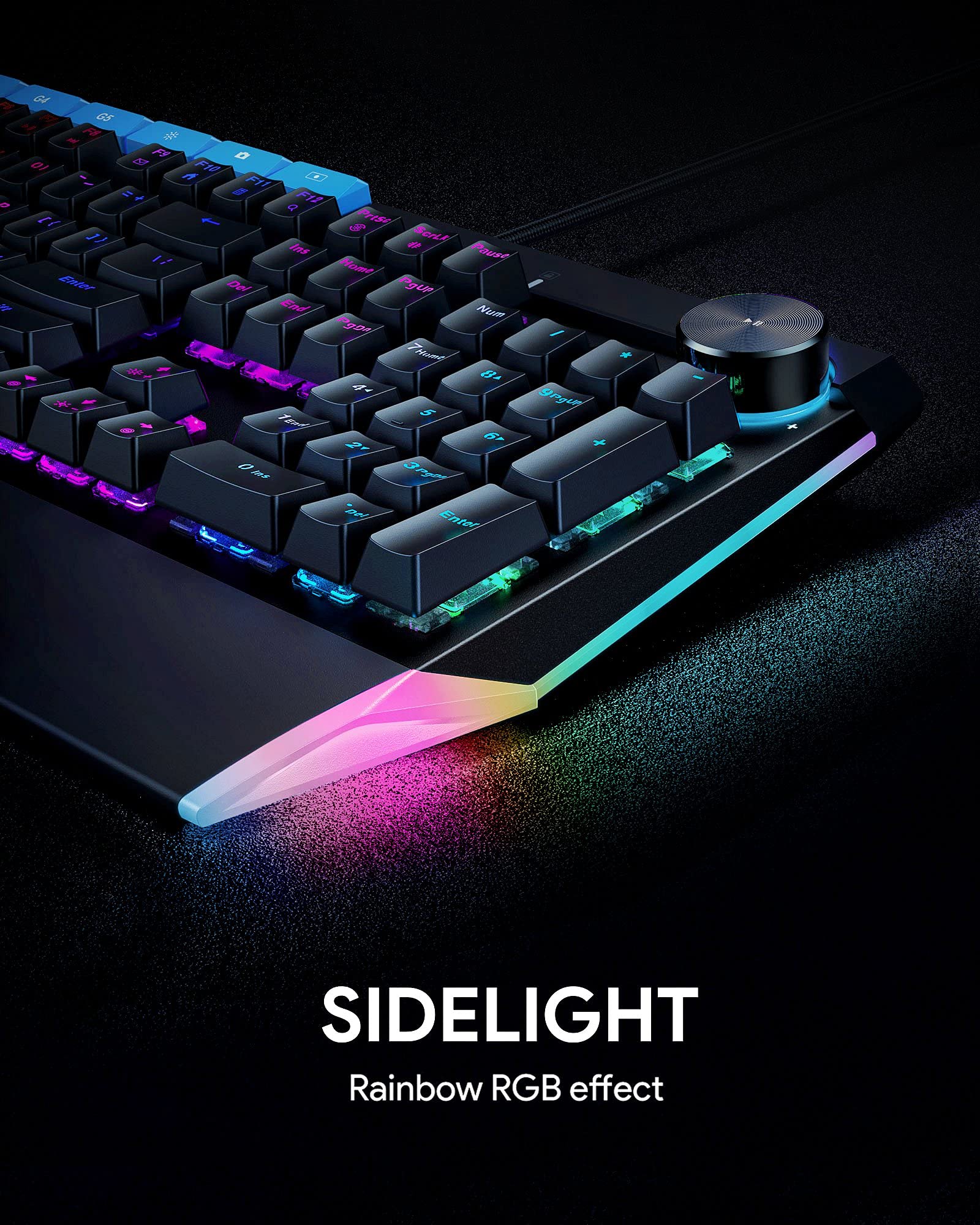 DSF Mechanical Keyboard with Rainbow Backlit & RGB LED Side Light Blue Switches 112keys Volume Control Button,RGB Lighting Programmable Macros Gaming for PC Gamer Computer Desktop (Black), KM-G17