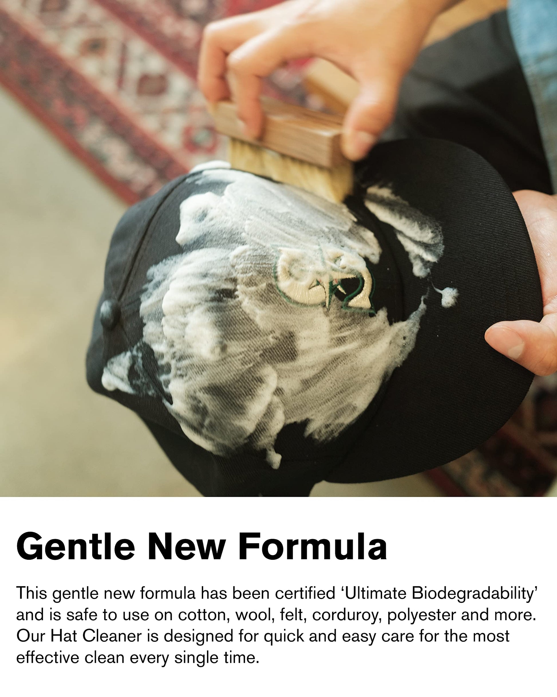 - Safe and Gentle: The hat cleaner is safe for use on various materials, including cotton, wool, felt, corduroy, and polyester, allowing you to clean your hats without damaging the fabric.